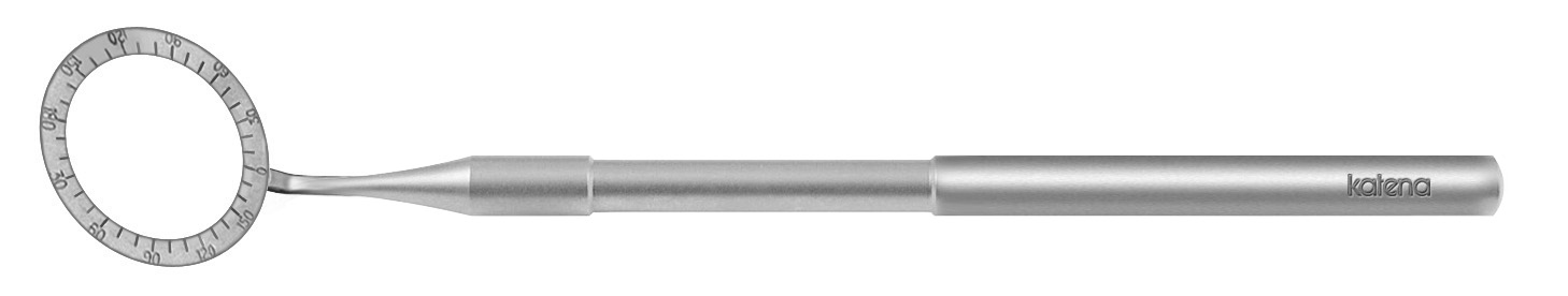 Medidor de grados MENDEZ con un diámetro interior de 12mm, marcas cada 10º, para una alineación axial precisa en la córnea.