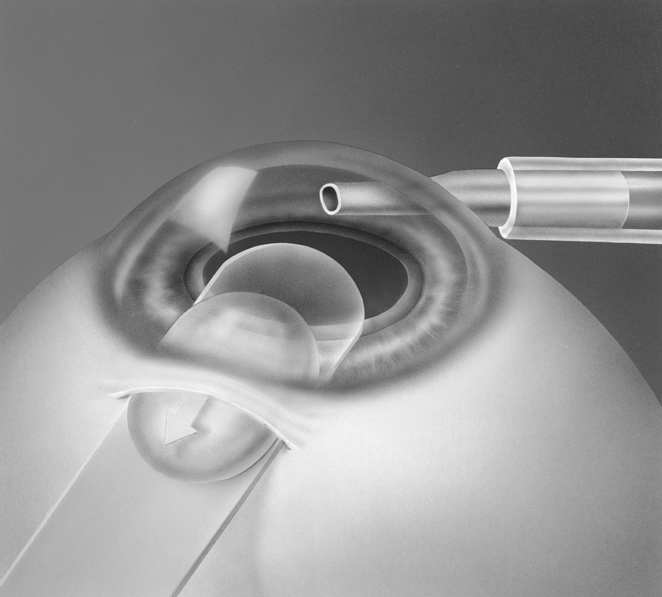 prolapso durante la facoemulsificación a la vez que actúa como guía para la